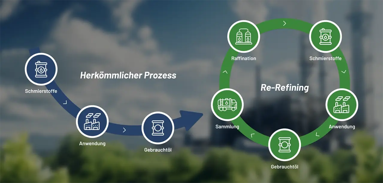 Unser Engagement für Nachhaltigkeit spiegelt sich besonders in unserer Partnerschaft mit führenden Re-Refining-Unternehmen wider. Durch diese strategische Zusammenarbeit bringen wir gebrauchtes Öl zurück in den Kreislauf, indem wir es in hochwertiges Basisöl umwandeln. Diese Initiative reduziert nicht nur die Umweltverschmutzung und schont unsere natürlichen Ressourcen, sondern unterstreicht auch unsere Verpflichtung zu Energieeffizienz und Kosteneinsparungen. Durch das Re-Refining fördern wir eine Kreislaufwirtschaft, die Umweltschutz und ökonomische Vorteile vereint.